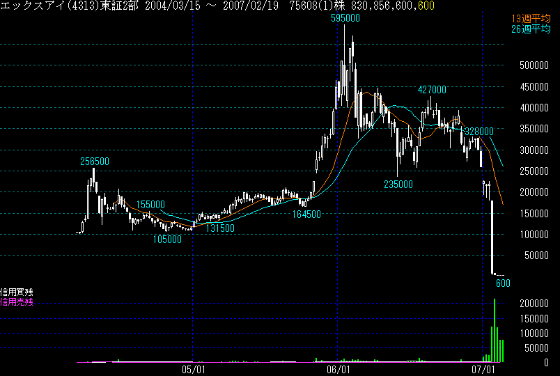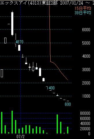 | アイ・エックス・アイ | 4313 | 東証2部 | 2007/2/21 | 2007/2/22 | 民事再生 | 開示1 開示2 チャート1 チャート2 チャート3 株券 | ||