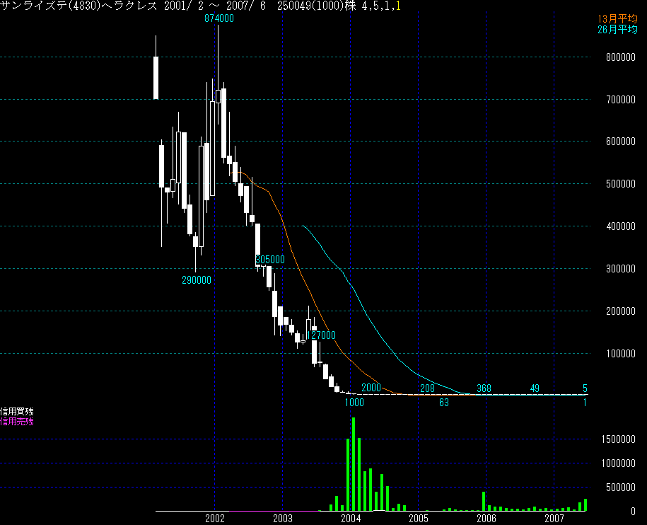 | クインランド | 2732 | ヘラクレス | 2007/9/26 | 2007/10/18 | 2007/11/16→2007/11/8 | 2007/11/19→2007/11/9 | 民事再生→破産 | 開示1 開示2 開示3 お知らせ 株券 |