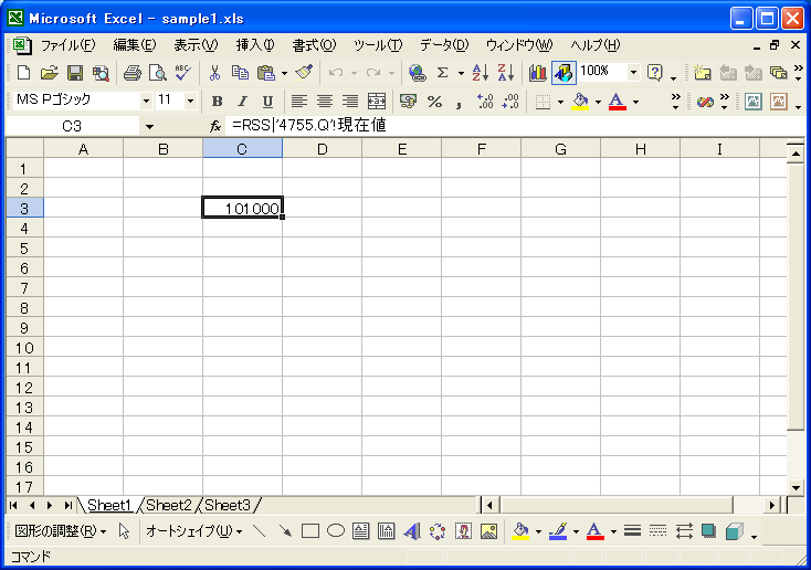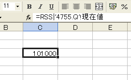 すると次のような数字が表示されます。この数字は銘柄コード4755(楽天)の現在の株価です。