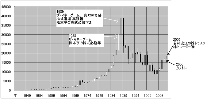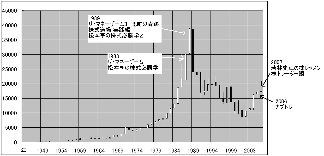 図 日経平均の年足チャートと株ゲームの発売日(クリックで拡大)
