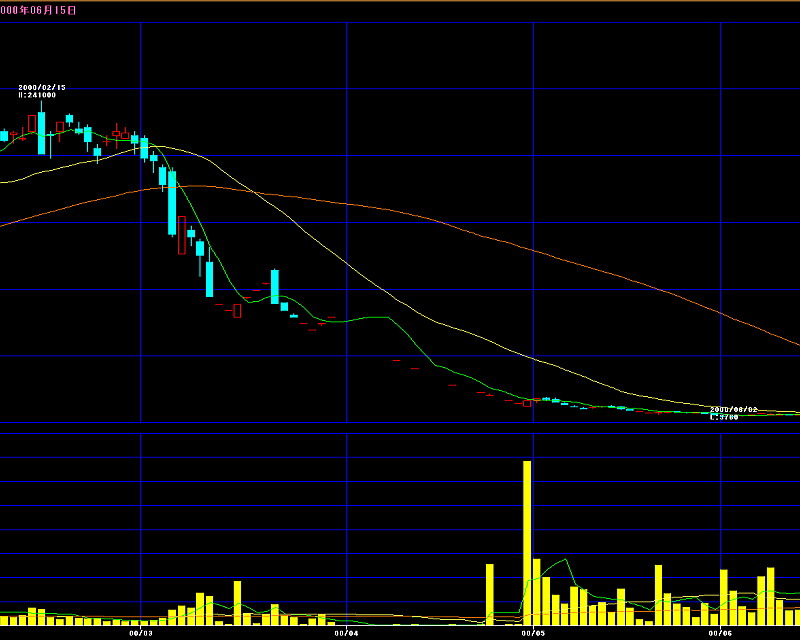 2000年3月、光通信(9435)はネットバブル崩壊、社長逮捕説などで、連日下落していたいました。そこに(ウソの)上方修正を発表し一時株価を戻すも長続きはせず。そして、3月30日、下方修正を発表し、そこから株価は20営業日連続ストップ安になります。